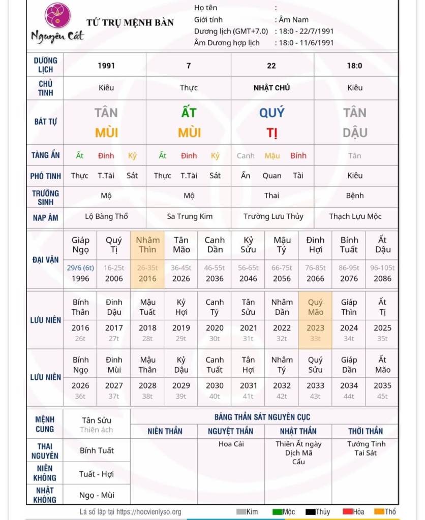 Về phương diện mệnh lý, cả đại vận và lưu niên về sau đều không tốt. Những năm như 2032,2033 người này sẽ đỡ hơn chút, ráng tranh thủ trị cho hết bệnh thì lúc sau mới đỡ được.